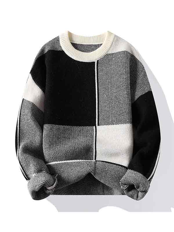 Men’s Contrast Color Checkered Sweater