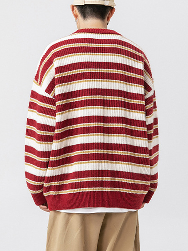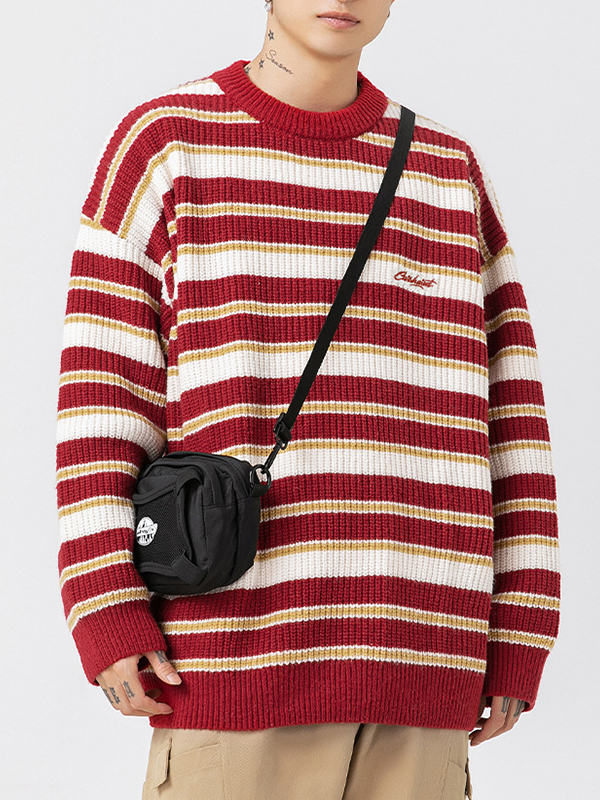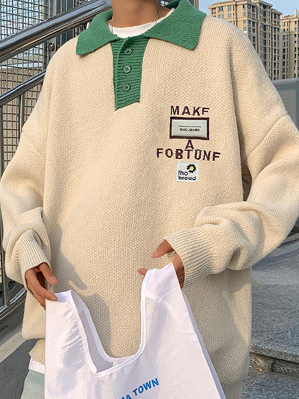 Men’s Contrast Color Letter Embroidery Labeling Knit Sweater