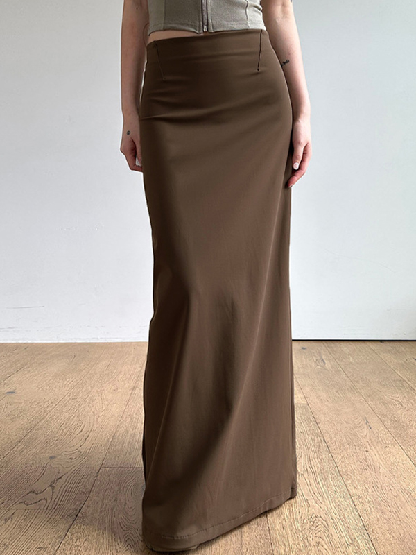 Knitted Slim-Fit Solid Color One Piece Maxi Skirts
