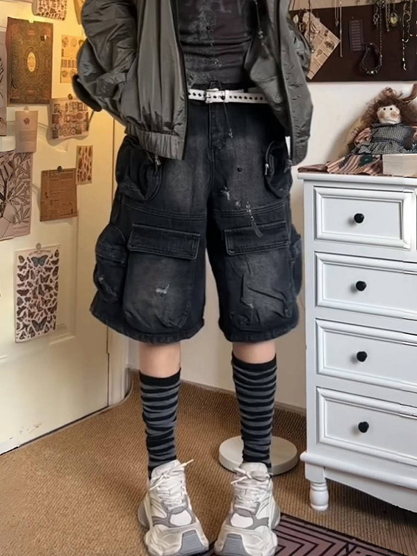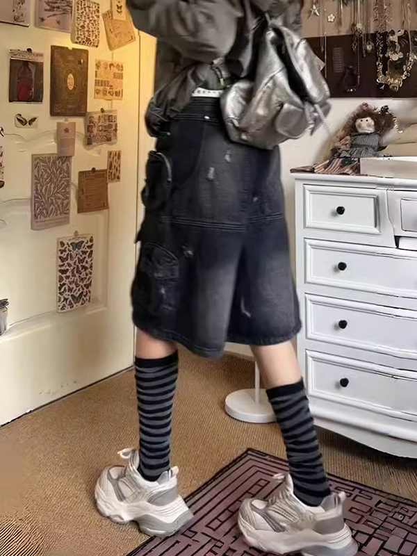 Hip Pop Contrast Letter Print Drawstring Shorts