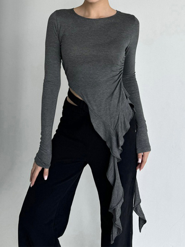 Solid Color Rib High Elastic Breasted Long Sleeve Knit
